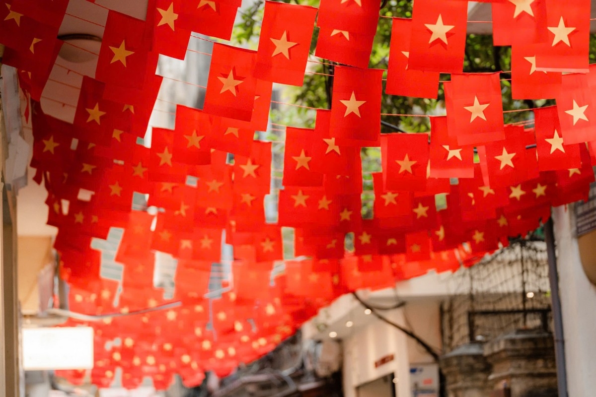 Phố phường treo cờ đỏ sao vàng rợp trời.