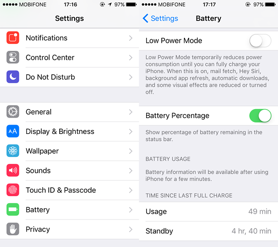 - Kích hoạt chế độ Low Power (nguồn điện thấp) để tắt tính năng chạy nền và các hiệu ứng hình ảnh.