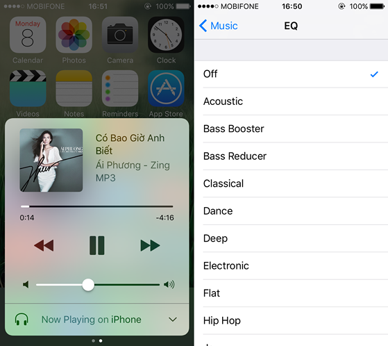 - Đầu tiên, bạn hãy truy cập vào Settings > Music > EQ và chuyển về chế độ Off. Việc này đôi khi sẽ giúp bạn giải quyết hoàn toàn vấn đề.