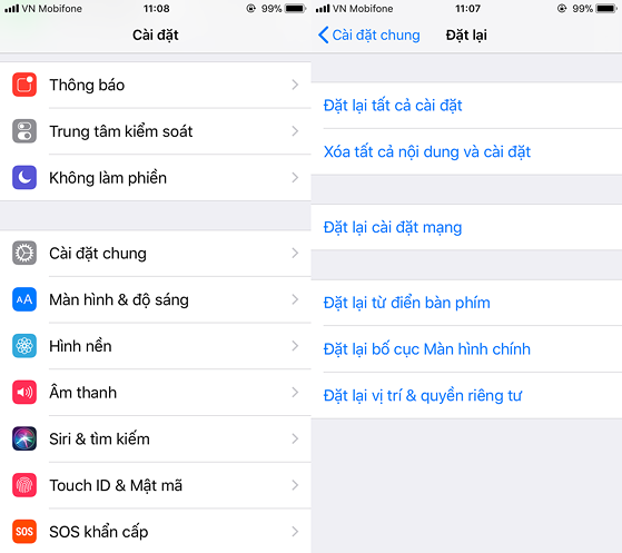 - Thiết lập lại toàn bộ cài đặt trên thiết bị bằng cách vào Settings (cài đặt) > General (cài đặt chung) > Reset (đặt lại) > Reset All Settings (xóa toàn bộ cài đặt). Lưu ý, việc này sẽ không làm mất dữ liệu trên máy.