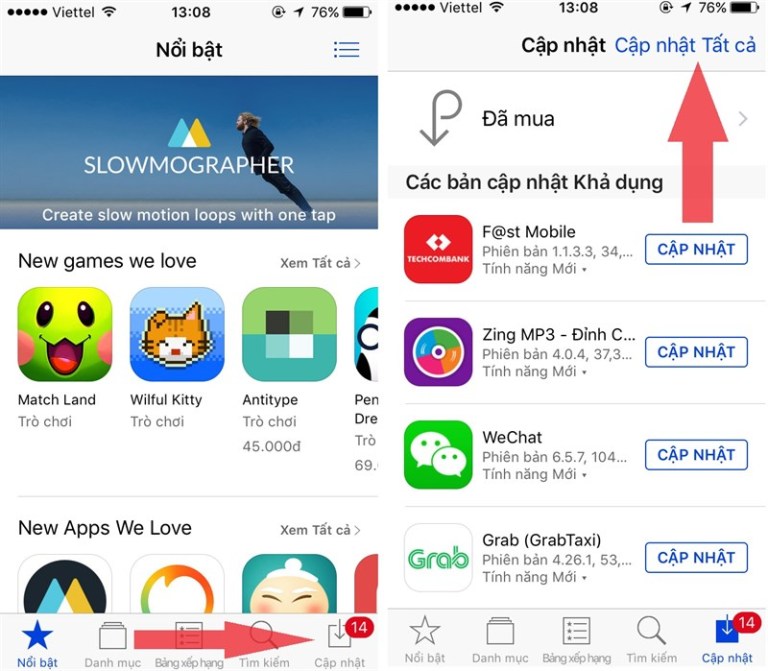 - Vào App Store > Cập nhật > Cập nhật tất cả để nâng cấp ứng dụng lên 64 bit (nếu nhà sản xuất hỗ trợ).