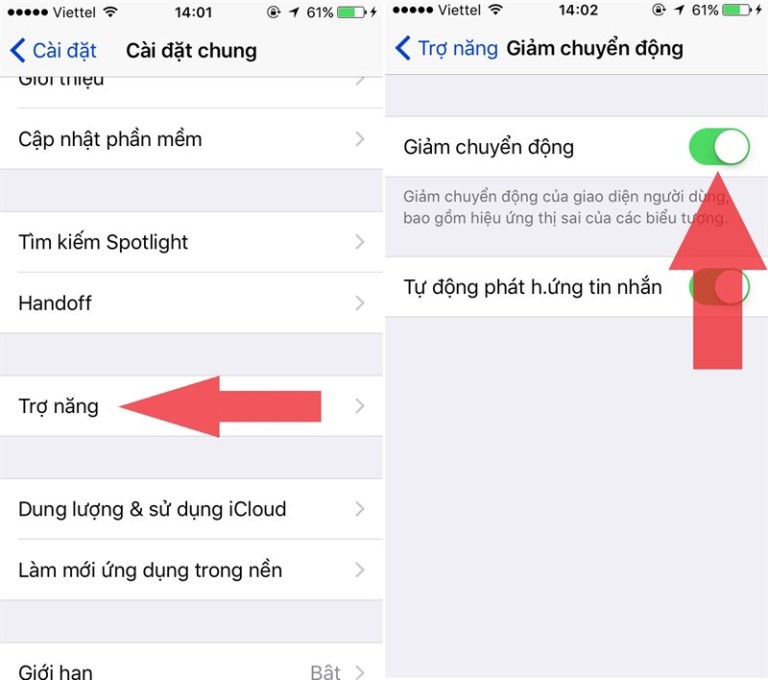 - Truy cập vào Cài đặt > Cài đặt chung > Trợ năng > Giảm chuyển động > Bật.