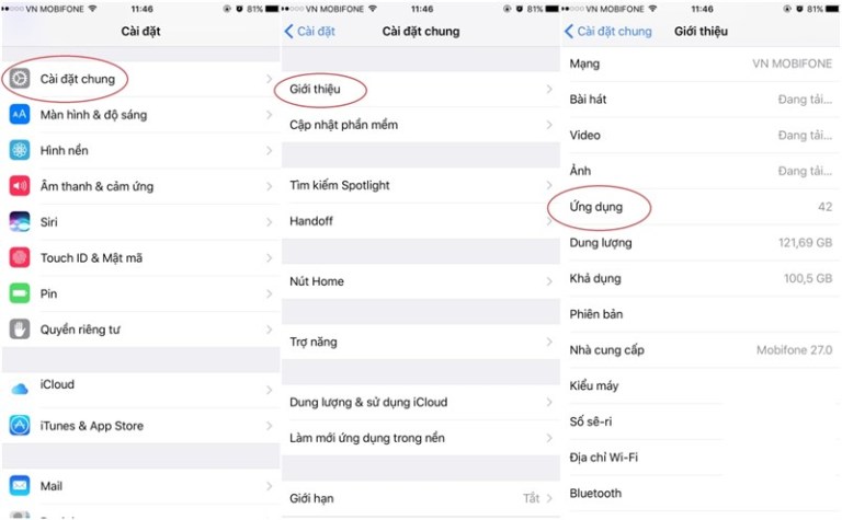- Truy cập vào Cài đặt > Cài đặt chung > Giới thiệu điện thoại > Ứng dụng. Đây là nơi cung cấp cho bạn danh sách các ứng dụng lỗi thời (32 bit), hãy loại bỏ chúng ra khỏi điện thoại nếu không sử dụng tới.
