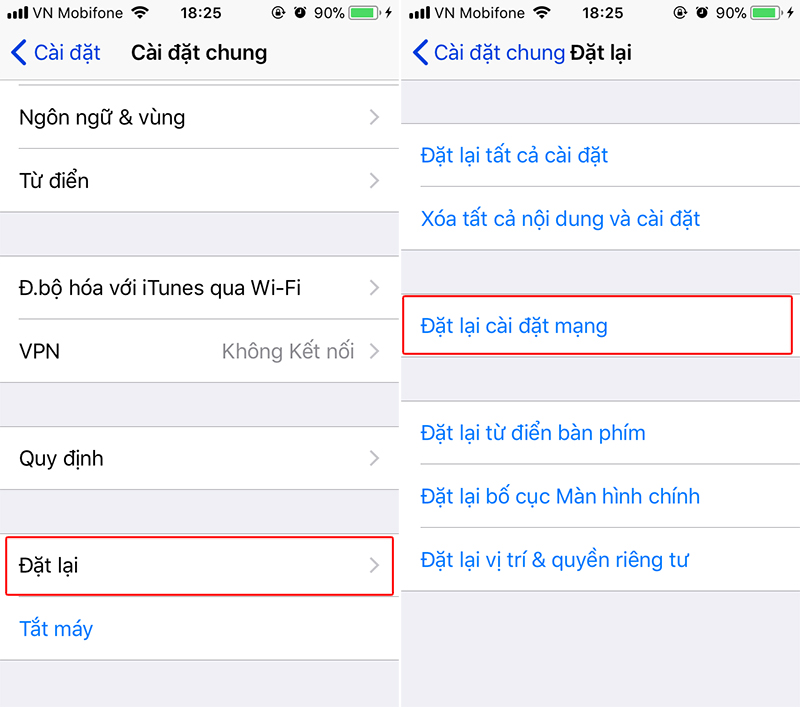 - Cài đặt > Cài đặt chung > Đặt lại > Đặt lại cài đặt mạng.