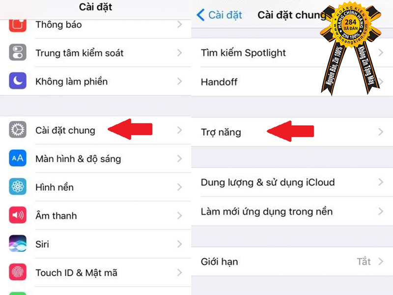 Vào Cài đặt > chọn Cài đặt chung > tiếp tục chọn Giới hạn.
