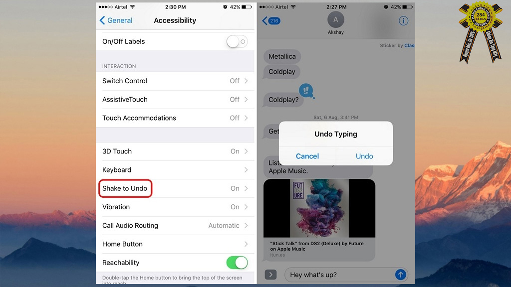 Nếu bạn muốn nhanh chóng quay lại thao tác hoặc nội dung trước khi xoá trên văn bản, bạn chỉ cần lắc nhẹ iPhone và mọi thứ sẽ được hoàn tác lại như ban đầu. Để sử dụng tính năng này, bạn có thể kích hoạt như sau: "General (Cài đặt chung)" > Accessibility (Trợ năng) > Shake to Undo (Lắc để hoàn tác).