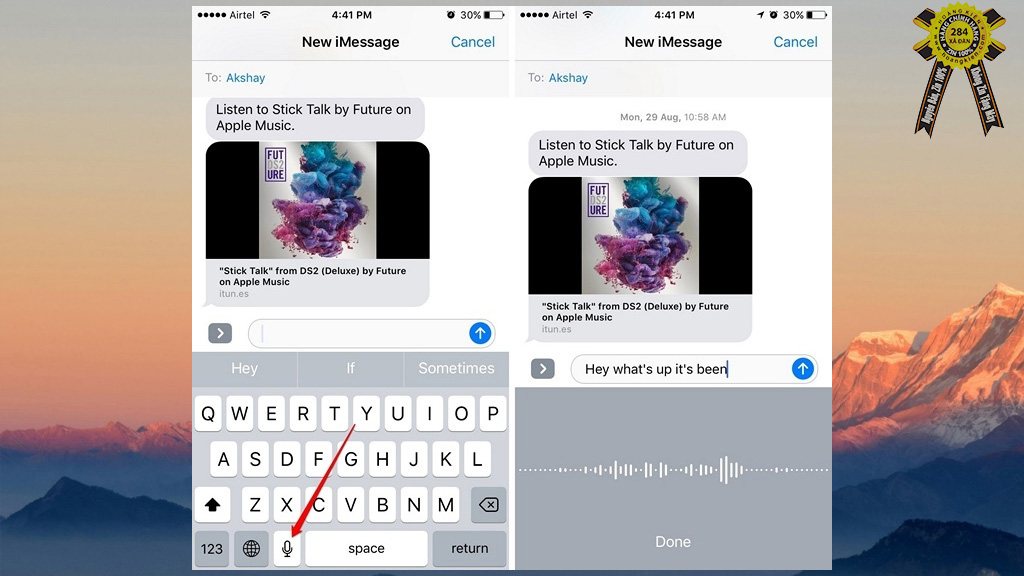 Bạn hoàn toàn có thể nhập văn bản mà không cần động tay tới khu vực bàn phím. Để làm điều này, bạn chỉ cần chạm vào nút "Mic" trên bàn phím iPhone, sau đó sử dụng giọng nói để yêu cầu iPhone nhập văn bản tương ứng giúp bạn.