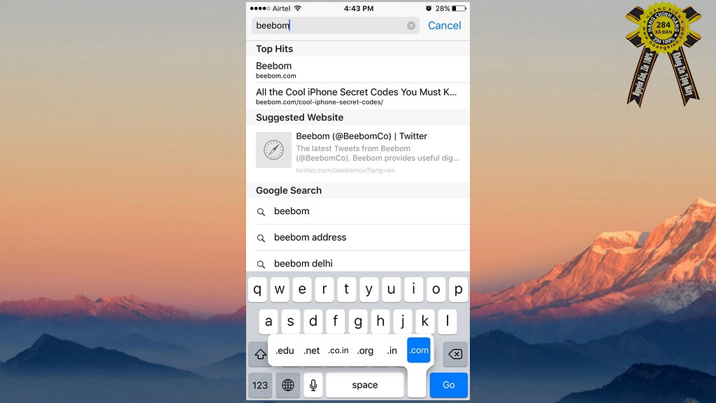 Nếu bạn hay quên và nhập sai tên miền của một trang Web nào đó, hoặc chỉ đơn thuần là muốn thao tác nhanh hơn, hãy chạm và giữ nút vào nút "." để lựa chọn tên miền gợi ý sẵn.