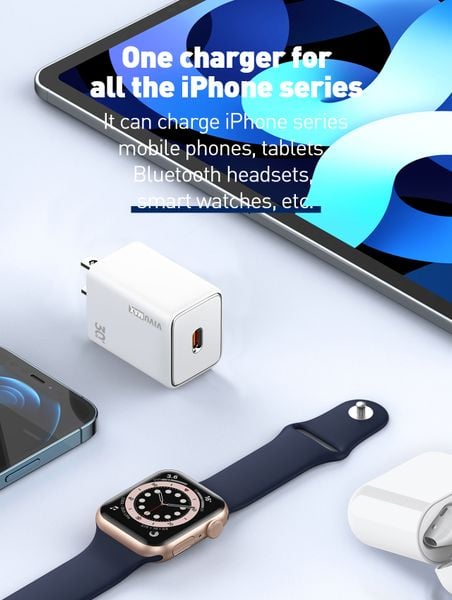 Bộ sạc nhanh cao cấp Vivumax PD30i thiết kế kiểu dáng nhỏ gọn, đơn giản, cùng màu trắng thanh lịch, làm cho sản phẩm sang trọng hơn