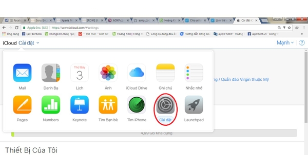 Bước 2 : Click vào biểu tượng Cài đặt để đi đến các thiết lập iCloud.