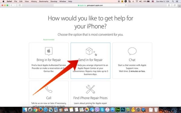 Bước 4: Trong trang tiếp theo, bạn chọn vào Send in for Repair.