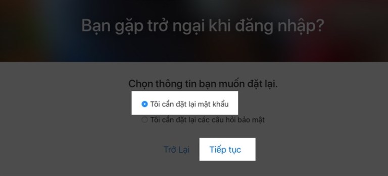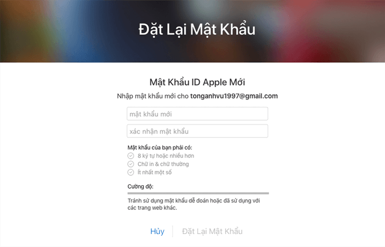 Lúc này hãy thực hiện theo các yêu cầu của Apple để quá trình đặt lại mật khẩu được hoàn tất.