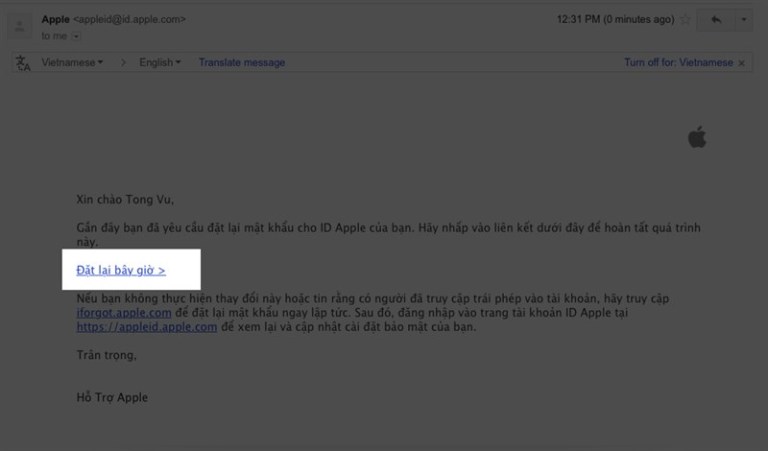 Mở email vừa được gửi tới, sau đó chọn Đặt lại bây giờ để đặt lại mật khẩu.