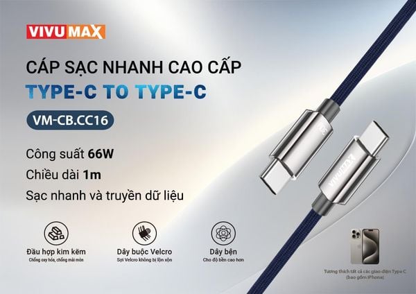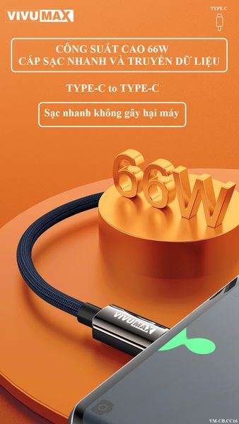 Thị trường cáp sạc thời gian gần đây thay đổi rất nhanh, đa phần chuyển từ cáp USB-A sang PD Type C (PD: Power Delivery). Phần lớn, các hãng điện thoại đang dịch chuyển từ các đầu sạc sang chuẩn PD Type C. Nắm bắt được sự thay đổi của thị trường, hãng phụ kiện Vivumax đã cho ra mắt hàng loạt các sản phẩm tương thích chuẩn PD Type C để đáp ứng nhu cầu của thị trường. Một trong số đó là: Cáp sạc nhanh dây bện dù đầu hợp kim kẽm 5A Vivumax CC16 Type C to Type C 66W.