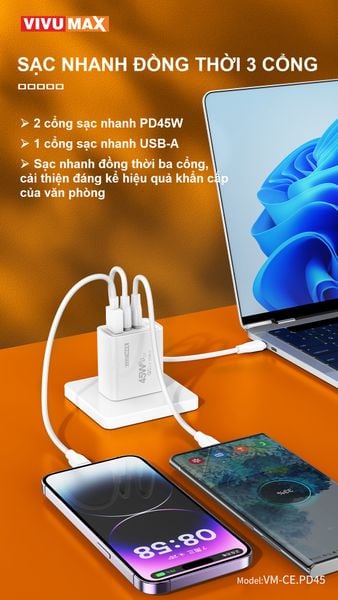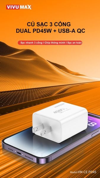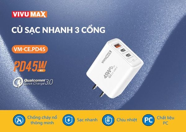 Củ sạc nhanh 3 cổng Vivumax PD45