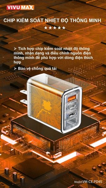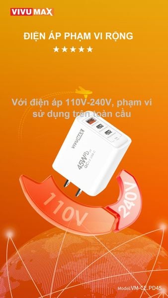 Thông số kỹ thuật Củ sạc nhanh 3 cổng Vivumax PD45