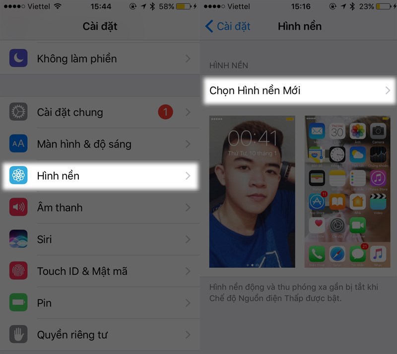 Truy cập Cài đặt > Hình nền > Chọn Hình nền mới. Lúc này hãy tìm chọn bức hình mà bạn vừa lưu.