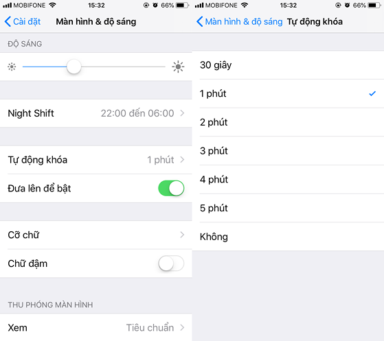 Bên cạnh đó, bạn cũng nên kích hoạt tính năng Auto lock (tự động khóa) màn hình trong phần Settings (cài đặt) > Display & Brightness (màn hình & độ sáng). Trong cửa sổ tiếp theo, bạn hãy lựa chọn khoảng thời gian tự động khóa thiết bị, đơn cử như 30 giây, 1 phút, 5 phút…