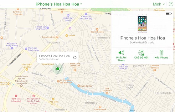 Lúc này trên bản đồ sẽ hiển thị vị trí của iPhone/iPad. Tại đây, người dùng cũng có thể kích hoạt Lost mode (chế độ mất) hoặc xóa dữ liệu từ xa nếu cảm thấy cơ hội tìm lại thiết bị chỉ bằng con số 0.