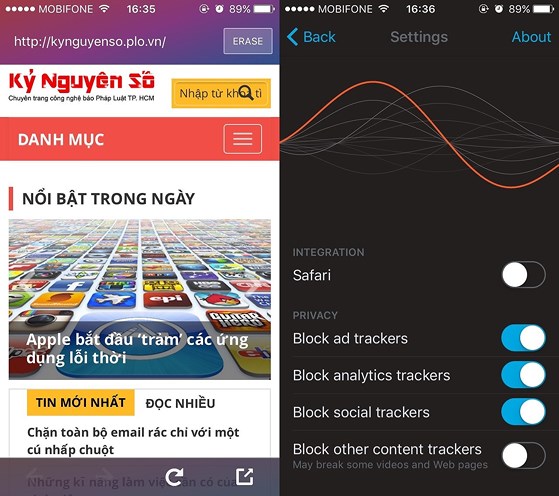Nếu không muốn bị theo dõi hoặc lộ các thông tin quan trọng, bạn hãy cài đặt trình duyệt Firefox Focus tại địa chỉ https://goo.gl/gsoXLa. Không giống như các trình duyệt khác, Firefox Focus tập trung chủ yếu vào phần bảo mật và sự riêng tư bằng cách ngăn chặn cookies, quảng cáo độc hại, theo dõi người dùng.