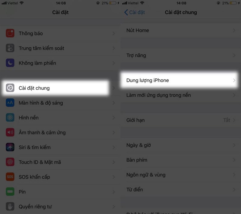 Các bạn vào phần Cài đặt > Cài đặt chung > Dung lượng iPhone.