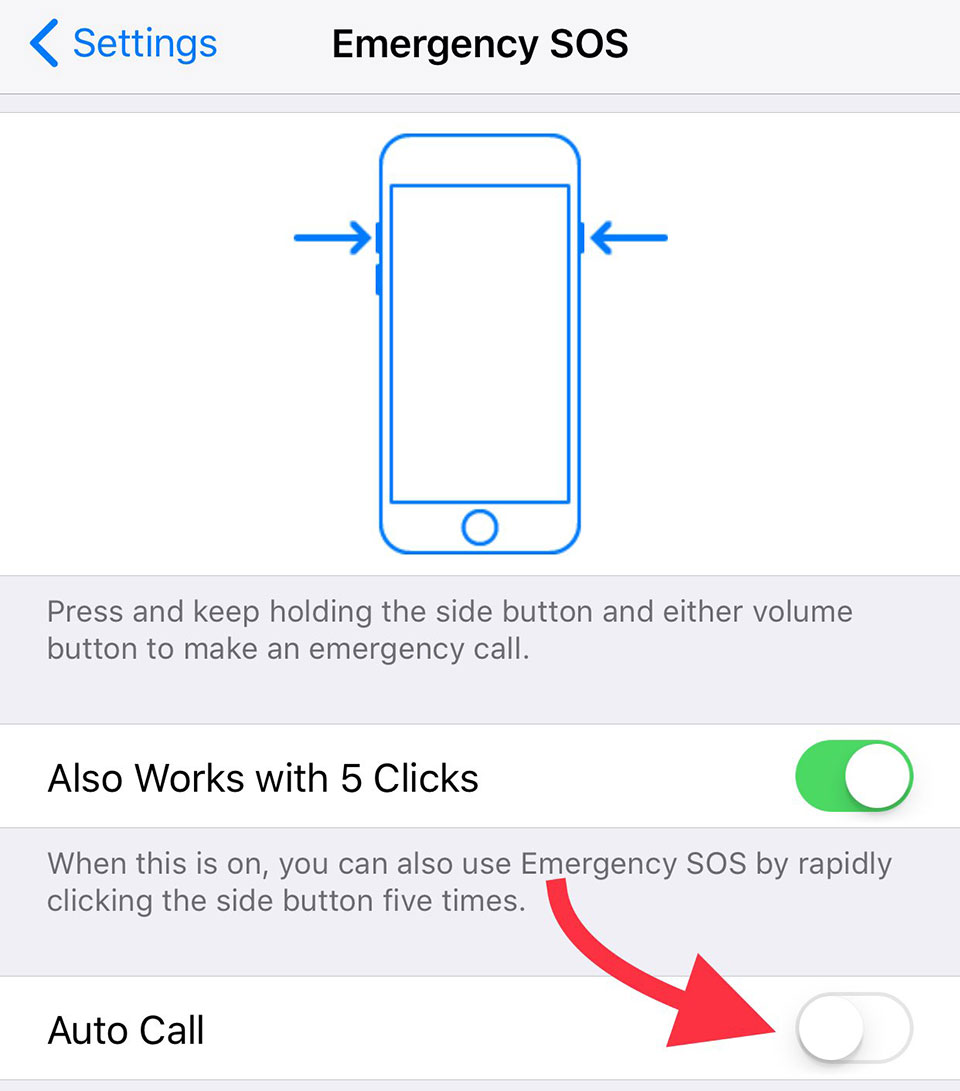 Khi kích hoạt, iPhone sẽ tự động gọi dịch vụ khẩn cấp theo mặc định nếu bạn kích hoạt chế độ Auto Call. Bạn cũng có thể kích hoạt một tùy chọn để nhấp vào nút nguồn năm lần nhanh để kích hoạt (dễ dàng hơn nhiều so nhấn 2 phím cùng lúc) và thậm chí vô hiệu hóa đồng hồ đếm ngược cuộc gọi thực hiện để đảm bảo sự bí mật.