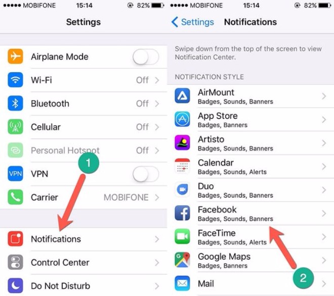 Thông báo (notifications) từ lâu đã là nguyên nhân gây hao pin hàng đầu trên smartphone. Nếu đang sử dụng kết nối di động (3/4G), bạn hãy truy cập vào Settings (cài đặt) > Notifications (thông báo), chạm vào các ứng dụng không cần thiết và vô hiệu hóa tùy chọn Allow Notifications để tắt thông báo.