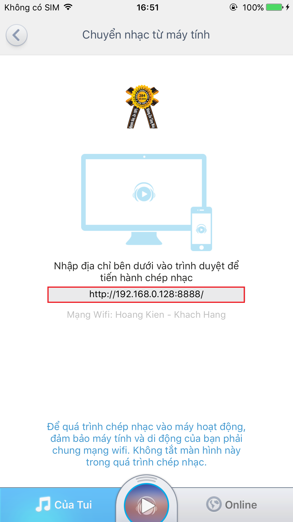 Lưu ý : Cả điện thoại và máy tính của bạn cần dùng chung 1 mạng wifi mới có thể chuyển được thành công.