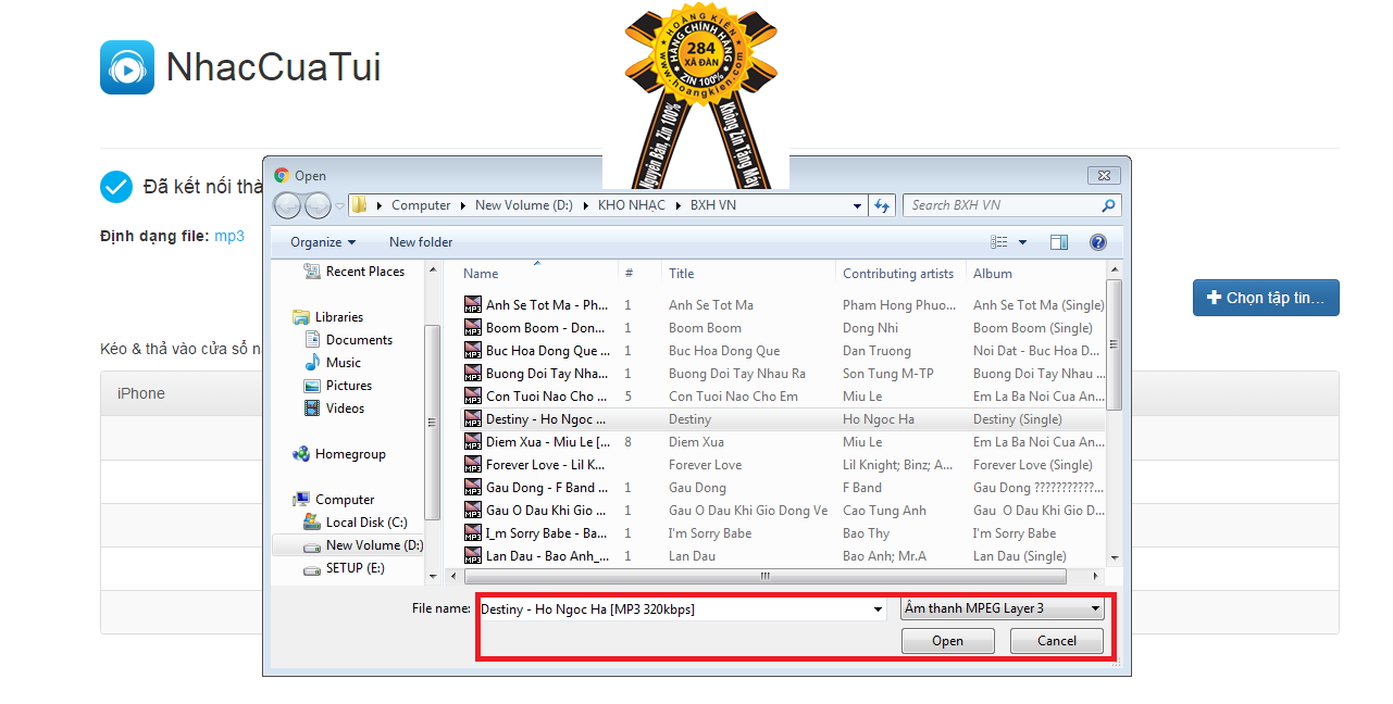 Tiếp theo các bạn chọn đến nơi lưu nhạc trên máy tính.