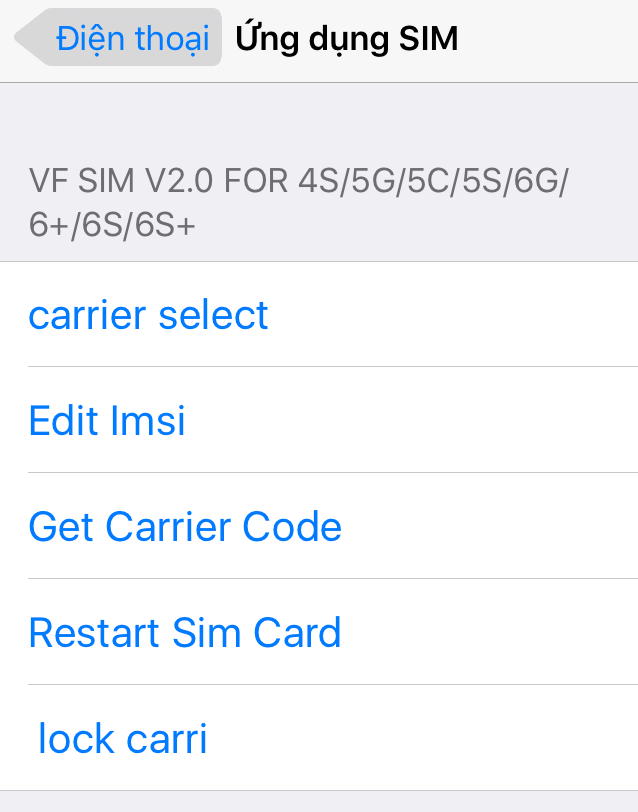 Vào Cài đặt > Điện thoại > Ứng dụng SIM (hoặc SIM Applications). Nếu có những tùy chọn như Carrier Select/Chọn nhà mạng, Lock Carrier/Khóa nhà mạng, Edit IMSI/Nhập mã IMSI... thì đây chắc chắn là máy lock.