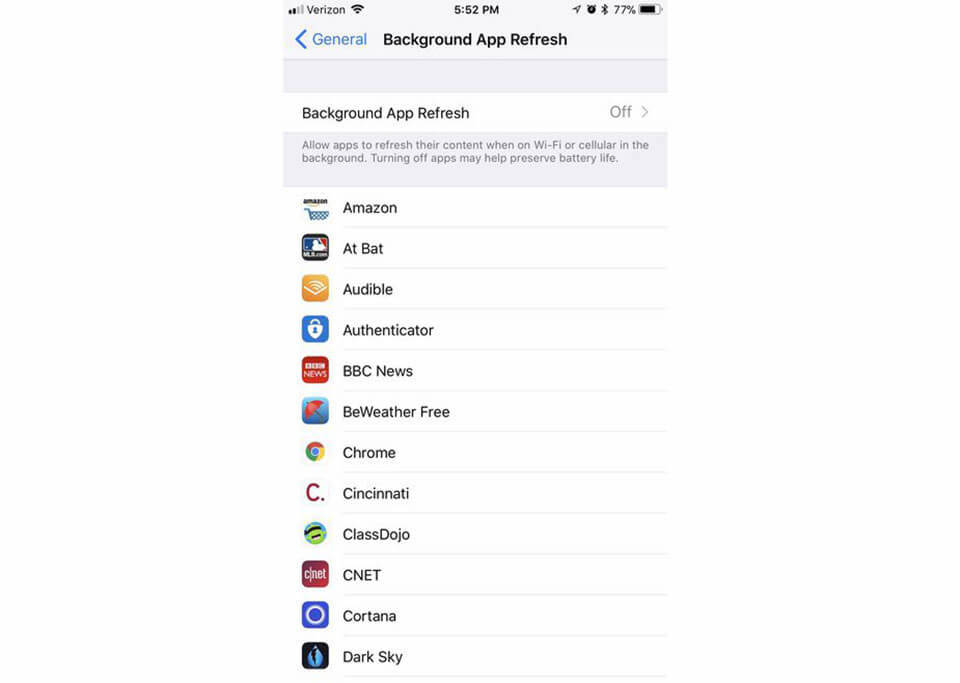 Bên cạnh đó, bạn có thể vô hiệu hoá thêm các chương trình chạy nền khác bằng cách vào Settings > General > Background App Refresh và tắt chúng.
