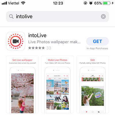 Bước 4: Truy cập vào App Store trên điện thoại, tìm ứng dụng intoLive và cài đặt.