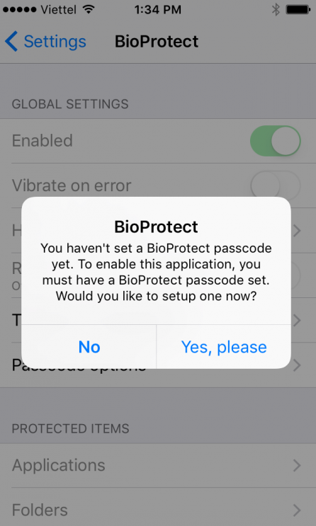 Bước 2: Để cấu hình BioProtect, bạn vào Settings > BioProtect. Ở lần đầu tiên sử dụng, BioProtect sẽ yêu cầu bạn đặt mật khẩu để sử dụng, bạn hãy chọn Yes, please.