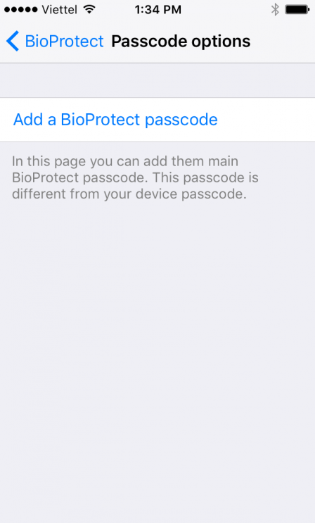 Bước 3: Chọn Add a BioProtect passcode, sau đó nhập vào mã khóa để bảo vệ.