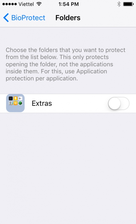 Ngoài ra, bạn có thể nhóm nhiều ứng dụng lại thành một Folder, sau đó khóa Folder đó bằng BioProtect bằng cách vào mục Settings > BioProtect> Folders và chọn Folder đó lên.