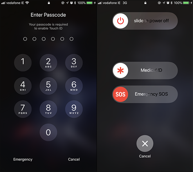 Emergency SOS có thể thực hiện một vài việc. Trước tiên, nó sẽ khóa điện thoại của bạn và vô hiệu hóa Touch ID hoặc Face ID. Để mở khóa điện thoại lần nữa, bạn phải nhập mật khẩu đăng nhập. Đây là điều rất được quan tâm bởi nó sẽ giúp người dùng iPhone không phải mở khóa điện thoại bằng dấu vân tay trong trường hợp bị ép quét vân tay vào máy, hoặc tương tự với khuôn mặt.