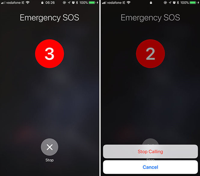 Bây giờ, ngay khi khởi động Emergency SOS, iPhone của bạn sẽ hiển thị ba giây đếm ngược và phát một tiếng động lớn. Khi đếm ngược kết thúc, iPhone sẽ thực hiện quay số dịch vụ khẩn cấp. Bạn có thể hủy cuộc gọi trước khi thời gian đếm ngược kết thúc bằng cách bấm vào Stop và sau đó Stop Calling. Bạn cũng có thể thiết lập bật âm thanh đếm ngược trong trình đơn Settings.