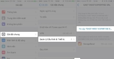 - Tiếp, bạn sẽ thấy thông báo, bạn chọn Cài đặt để tiến hành cài đặt Garageband lên thiết bị. Sau khi tải ứng dụng bạn làm như sau vào Cài đặt > Cài đặt chung > Quản lý cấu hình và thiết bị, tìm cấu hình có tên East West Expertise SRL, sau đó chọn Tin Cậy. Sau khi cấp quyền thành công thì bạn đã có thể tải và sử dụng các ứng dụng tương tự rất dễ dàng.