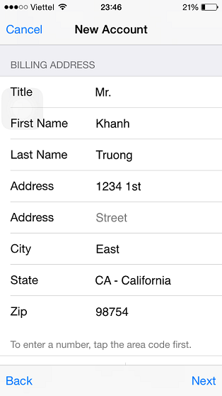 - State và Zip code: các bạn cứ chọn đại như mình (92843,..)