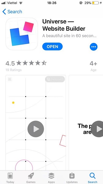 Bước 1: Tải về ứng dụng Universe - Website Builder tại đây.