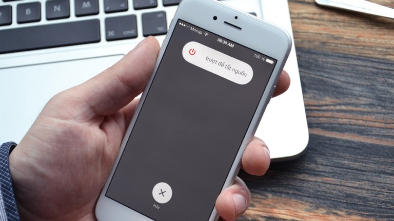 Bước 4: Bây giờ thiết bị sẽ chuyển sang giao diện tắt máy, vuốt vào thanh trượt để xác nhận giống như bình thường là xong.