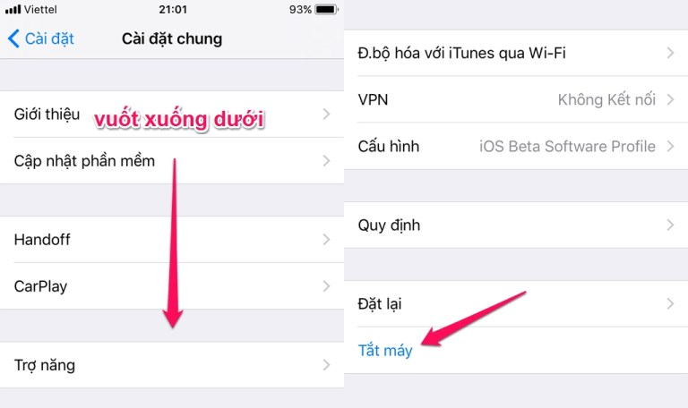 Bước 3: Tại giao diện Cài đặt chung bạn cuộn xuống cuối dưới cùng sẽ thấy dòng chữ “Tắt máy (Shut Down)” ngay bên dưới tùy chọn “Đặt lại (Reset)“. Nhấn vào tùy chọn “Tắt máy (Shut Down)” để kích hoạt tính năng.
