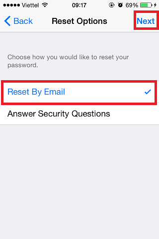 5 : Sau đó các bạn nhấn Next và chọn Reset Email