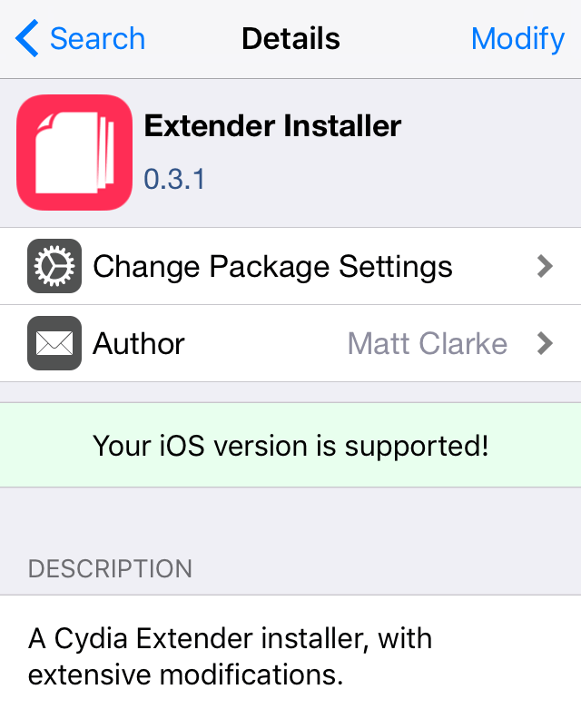 Bước 1: Cài đặt tweak có tên Extender Installer từ nguồn Cydia.vn