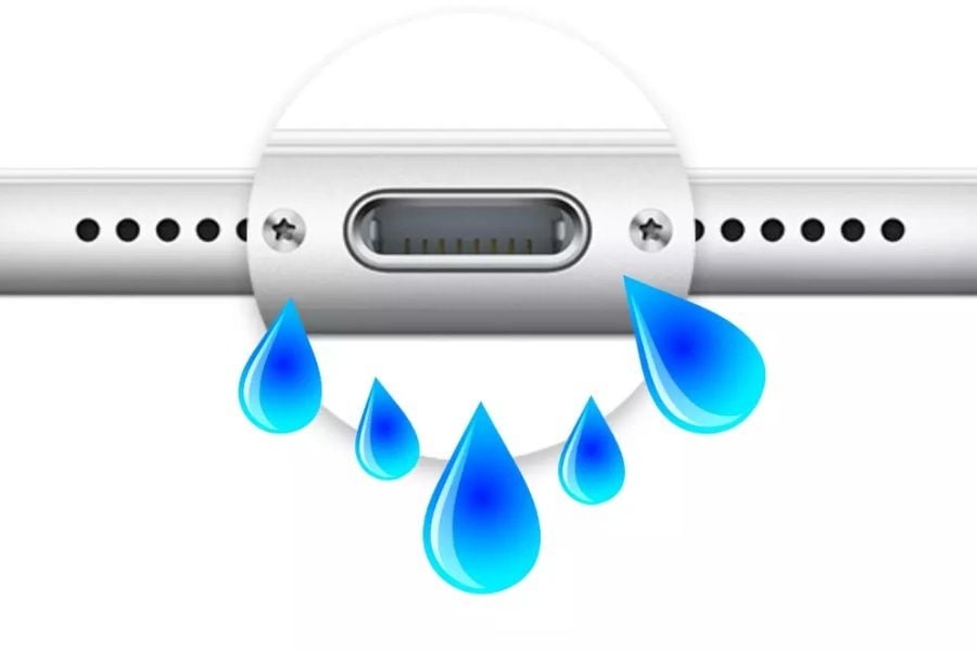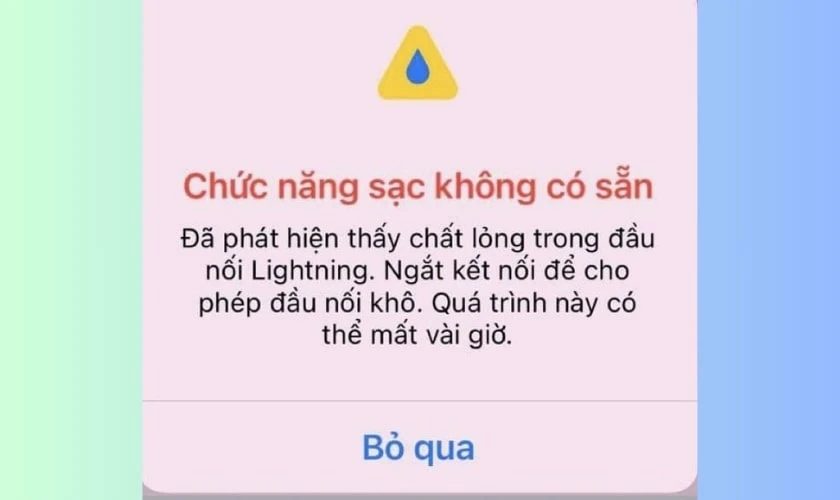 Khi cảm biến ẩm trong cổng sạc (USB-C/Lightning) nhận thấy có nước/độ ẩm, iPhone sẽ chặn sạc và hiện cảnh báo như: