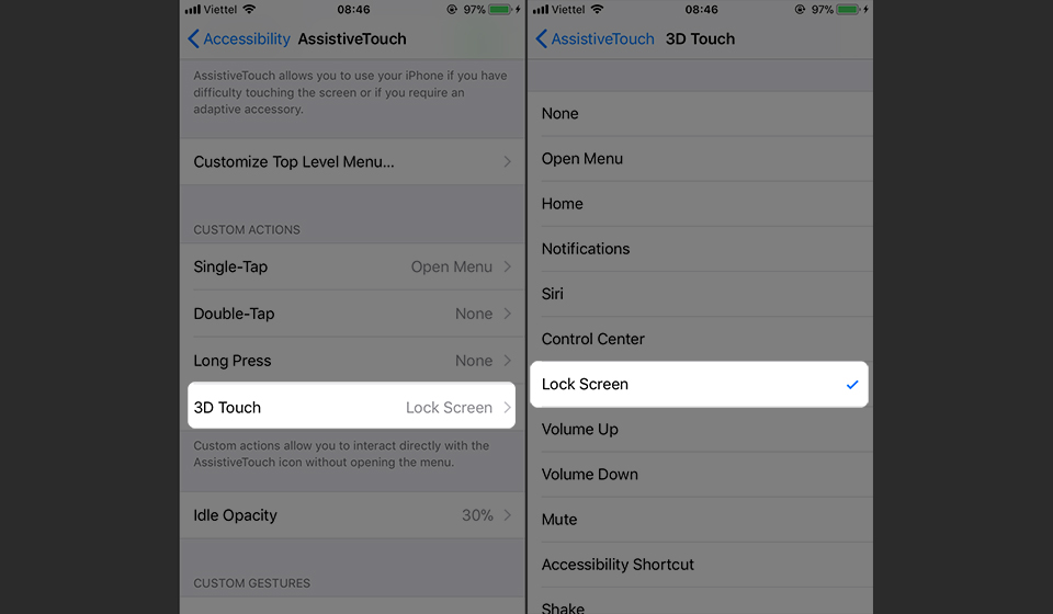 Bước 2: Vào mục 3D Touch, kéo xuống dưới và tìm “Lock Screen”, sau đó tích vào tùy chọn này.