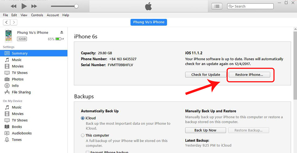 - Khôi phục lại iPhone bằng iTunes
