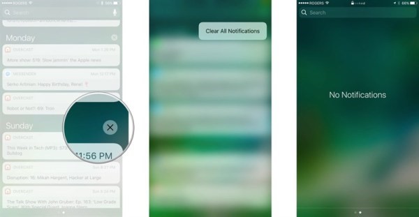 IOS 10 giúp các iPhone có thể xóa nhanh các thông báo bằng việc nhấn vào nút X ở trung tâm thông báo, tuy nhiên nếu iPhone của bạn được trạng bị 3D Touch thì tính năng này sẽ trở nên đỉnh vô cùng. Tại sao? Vì chỉ cần chạm mạnh vào biểu tượng X, ngay lập tức toàn bộ thông báo sẽ được xóa đi, không cần phải trải qua 2-3 bước như các thiết bị thông thường.