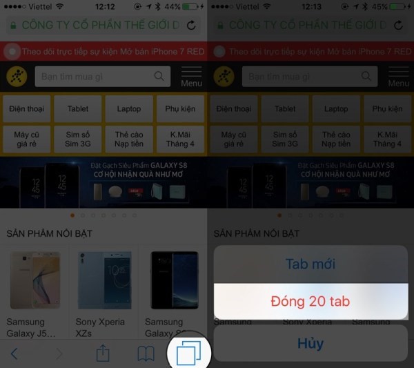Trong khi đang duyệt nội dung một trang Web nào đó, nhấn giữ nút Tabs ở góc dưới cùng bên phải màn hình, ngay lập tức một tùy chọn Đóng … tab sẽ xuất hiện.