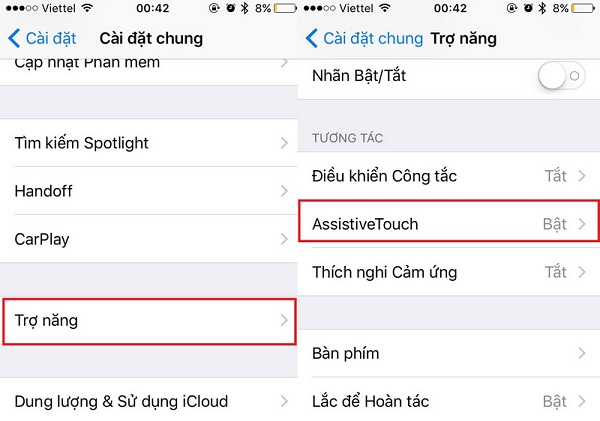 Bước 1: Vào Cài đặt - Cài đặt chung - Trợ năng - AssistiveTouch